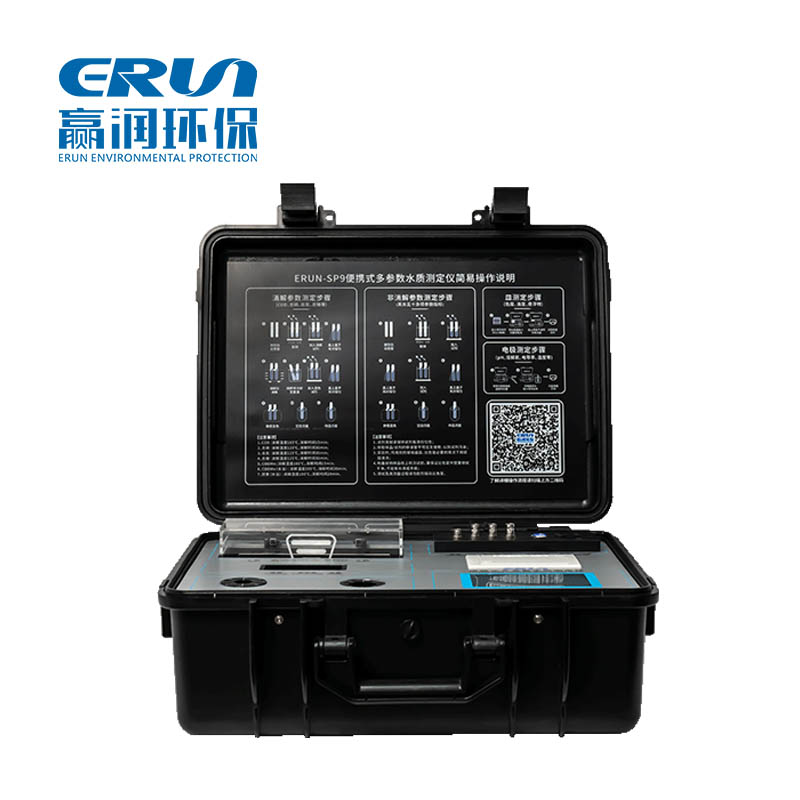 贏潤集團研發生產的ERUN-SP9便攜式多參數水質分析測定儀是一款集分光光度法與電極法于一體的水質快速測試設備,專為現場快速檢測和實驗室多項目分析而設計。手提式多功能綜合水質測定儀配備16通道光學檢測系統,可精準測定COD、氨氮、總磷、總氮、重金屬等60余項指標,同時支持PH、電導率、TDS、鹽度、溶解氧及水溫等參數測量,涵蓋從污染源追蹤到飲用水質控制的多種應用場景。便攜式多參數水質檢測儀內置雙溫控消解裝置,采用鋰電池供電,無需外部電源,在野外、無電環境中依舊穩定運行,是環境監測、科研實驗、污水處理廠、高